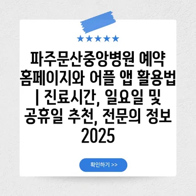 파주문산중앙병원 예약 홈페이지와 어플 앱 활용법 | 진료시간, 일요일 및 공휴일 추천, 전문의 정보 2025에 대해 알아보겠습니다.