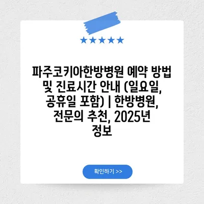✅ 파주코키아한방병원의 예약 방법과 진료시간을 놓치지 마세요.