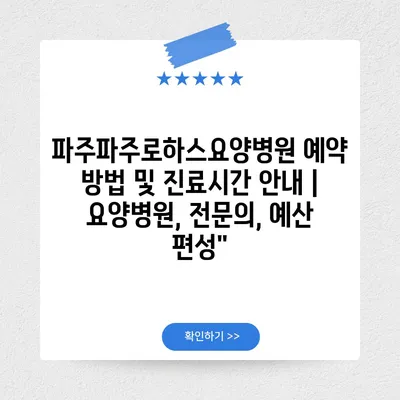 ✅ 파주파주로하스요양병원 예약 방법을 자세히 알아보세요.