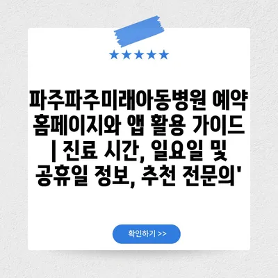 파주파주미래아동병원 예약 홈페이지와 앱 활용 설명서 | 진료 시간, 일요일 및 공휴일 정보, 추천 전연락