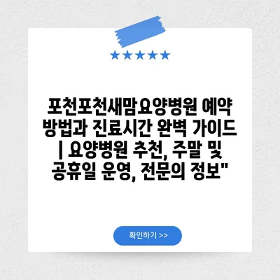 ✅ 포천포천새맘요양병원의 예약 방식을 자세히 알아보세요.