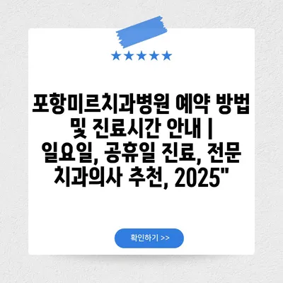 포항미르치과병원 예약 방법 및 진료시간 공지 | 일요일, 공휴일 진료, 전문 치과의사 추천, 2025에 대해 자주 묻는 질문 TOP 5