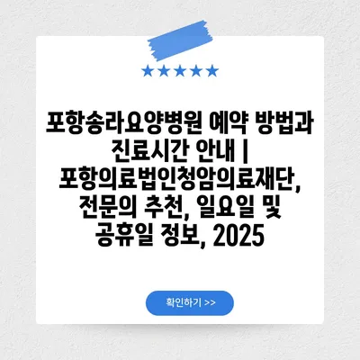 포항송라요양병원 예약 방법과 진료시간 공지 | 포항의료법인청암의료재단, 전연락 추천, 일요일 및 공휴일 정보, 2025 에 대해 자주 묻는 질문 TOP 5