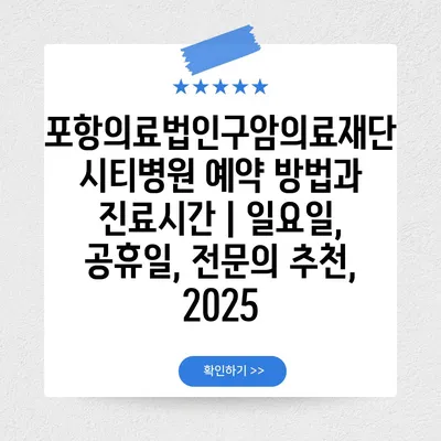 포항의료법인구암의료재단 시티병원 예약 방법과 진료시간 | 일요일, 공휴일, 전연락 추천, 2025에 대해 알아보겠습니다.