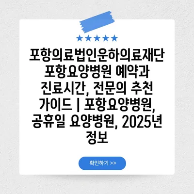 포항의료법인운하의료재단 포항요양병원 예약과 진료시간, 전연락 추천 설명서 | 포항요양병원, 공휴일 요양병원, 2025년 정보 에 대해 자주 묻는 질문 TOP 5