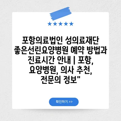 ✅ 포항 좋은선린요양병원의 예약 방법과 진료시간을 쉽게 알아보세요!