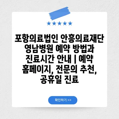 ✅ 포항의료법인 안흥의료재단 영남병원의 예약 방법을 지금 바로 알아보세요.