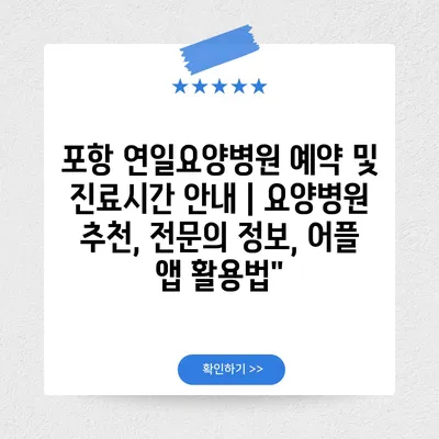 ✅ 포항 연일요양병원의 예약 절차를 자세히 알아보세요.