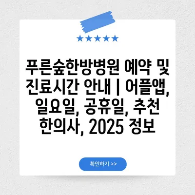 푸른숲한방병원 예약 및 진료시간 공지 | 어플앱, 일요일, 공휴일, 추천 한의사, 2025 정보 에 대해 자주 묻는 질문 TOP 5