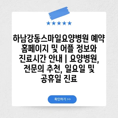 하남강동스마일요양병원 예약 홈페이지 및 어플 정보와 진료시간 공지 | 요양병원, 전연락 추천, 일요일 및 공휴일 진료 에 대해 자주 묻는 질문 TOP 5