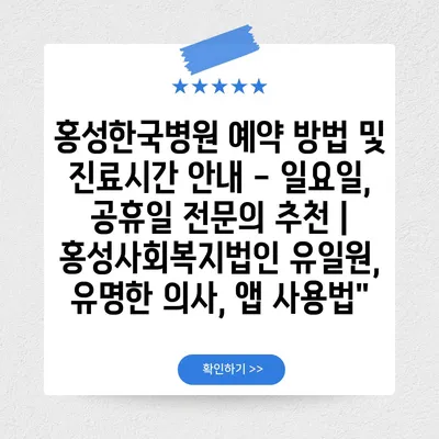 ✅ 홍성한국병원 예약 방법과 꿀팁을 지금 바로 알아보세요.