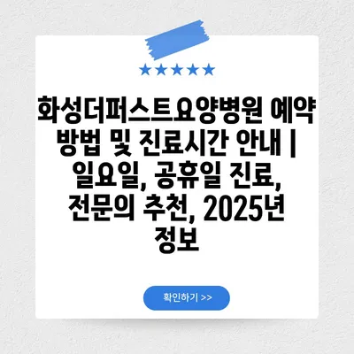화성더퍼스트요양병원 예약 방법 및 진료시간 안내 | 일요일, 공휴일 진료, 전문의 추천, 2025년 정보
