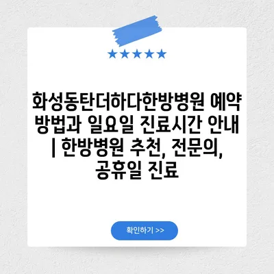 ✅ 화성동탄더하다한방병원의 진료시간과 예약 방법을 자세히 알아보세요!