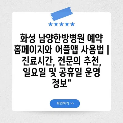 화성 남양한방병원 예약 홈페이지와 어플앱 사용법 | 진료시간, 전연락 추천, 일요일 및 공휴일 운영 정보”에 대해 자주 묻는 질문 TOP 5