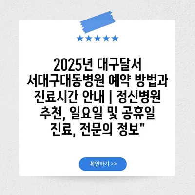 2025년 대구달서 서대구대동병원 예약 방법과 진료시간 공지 | 정신병원 추천, 일요일 및 공휴일 진료, 전연락 정보