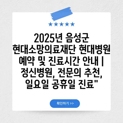 2025년 음성군 현대소망의료재단 현대병원 예약 및 진료시간 공지 | 정신병원, 전연락 추천, 일요일 공휴일 진료” 에 대해 자주 묻는 질문 TOP 5