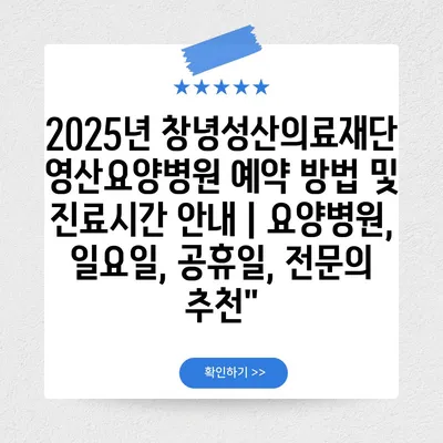 2025년 창녕성산의료재단 영산요양병원 예약 방법 및 진료시간 공지에서는 요양병원의 예약 절차와 운영 시간을 자세히 설명합니다.