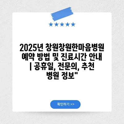 2025년 창원창원한마음병원 예약 방법 및 진료시간 안내 | 공휴일, 전문의, 추천 병원 정보”