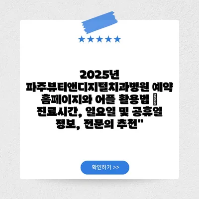 ✅ 2025년 파주뷰티앤디지털치과병원의 예약 절차와 혜택을 알아보세요.