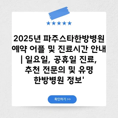 ✅ 2025년 파주스타한방병원의 진료시간을 자세히 알아보세요!