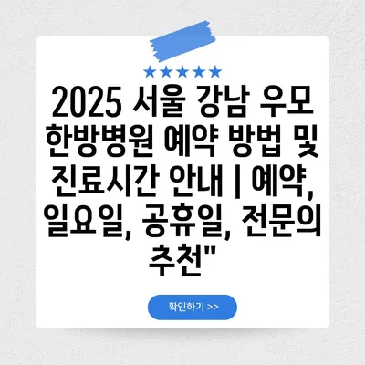✅ 2025 서울 강남 우모 한방병원 예약 방법을 지금 바로 확인해 보세요.
