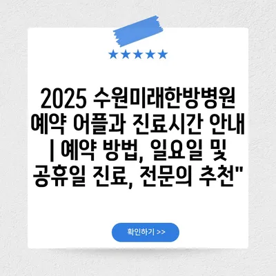 2025 수원미래한방병원 예약 어플과 진료시간 안내 | 예약 방법, 일요일 및 공휴일 진료, 전문의 추천”