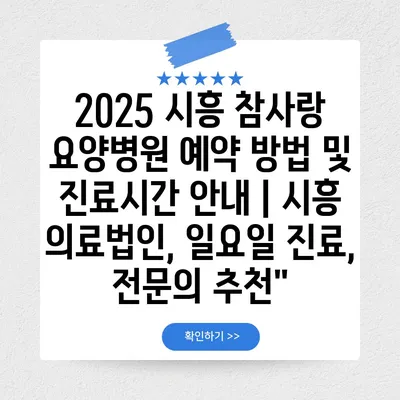 2025 시흥 참사랑 요양병원 예약 방법 및 진료시간 안내 | 시흥 의료법인, 일요일 진료, 전문의 추천”
