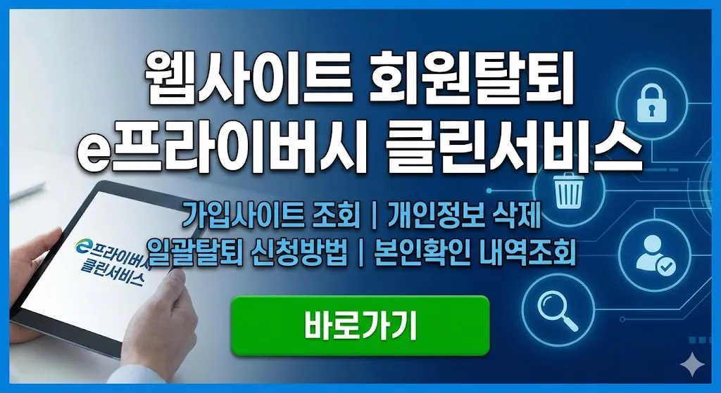 웹사이트 회원 탈퇴 서비스를 통해 오래전 가입하고 잊고 있던 사이트들을 한 번에 정리할 수 있습니다. 아이디와 비밀번호를 몰라도 본인인증만으로 일괄 탈퇴 신청이 가능하여 개인정보 유출 걱정을 덜 수 있습니다. 이 글에서는 e프라이버시 클린서비스 이용 방법, 탈퇴 신청 절차, 주의사항까지 상세히 정리했습니다.